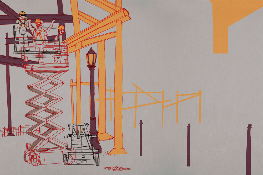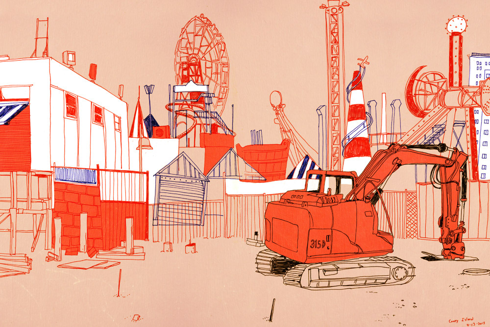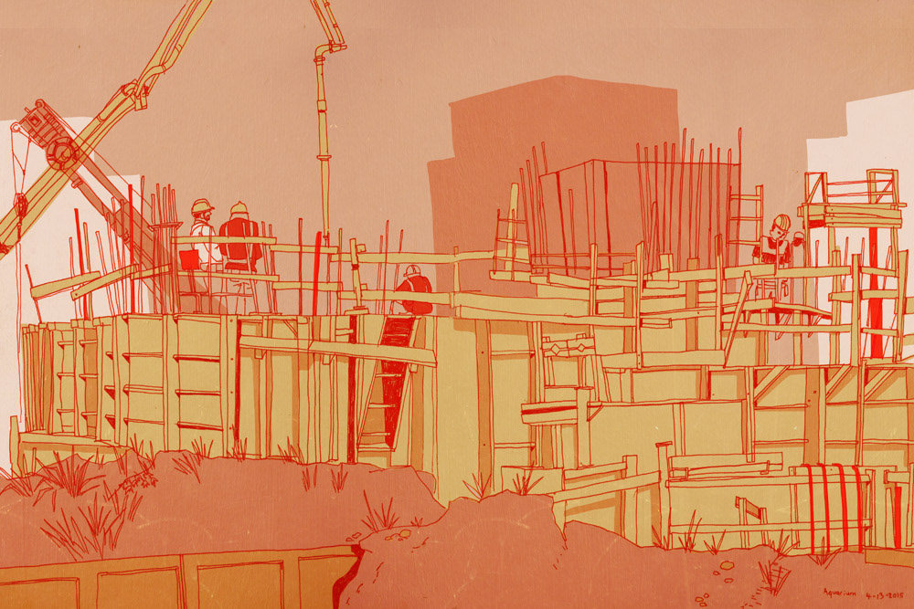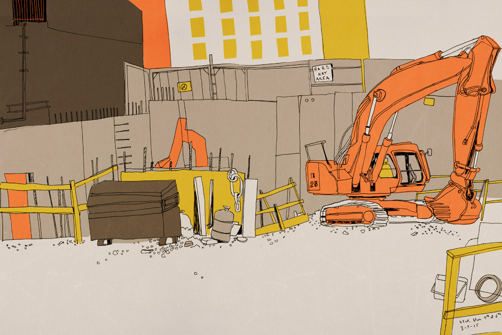 "Works in Progress" is a series of sketchbook drawings focused on construction sites in NYC, 2015. Forgive the clever title; these are not works in progress.